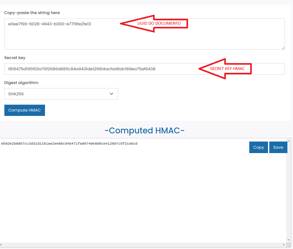 Agora, vamos confirmar se o HMAC que a D4Sign enviou está correto. Para isso, use uma ferramenta externa de validação: